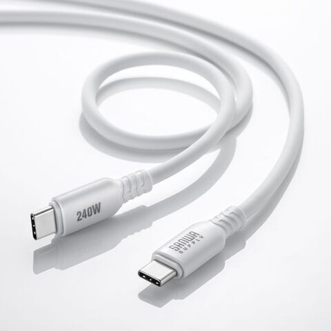 サンワサプライ USB2.0 Type-C シリコンケーブル(PD240W・1m・ホワイト) KU-CCPES10W 【返品種別A】