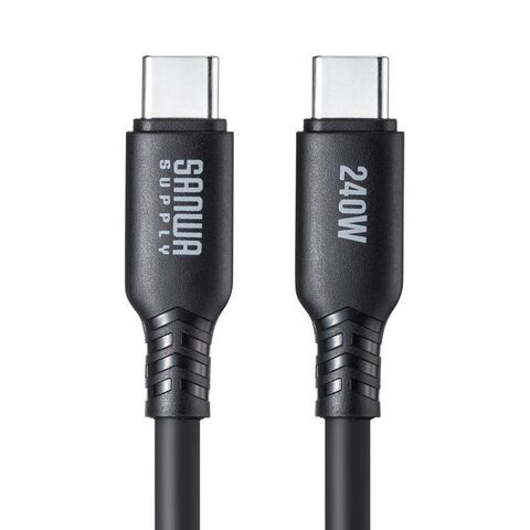 サンワサプライ USB2.0 Type-C シリコンケーブル(PD240W・2m・ブラック) KU-CCPES20BK 【返品種別A】