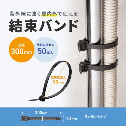サンワサプライ 結束バンド(屋外用・耐候性・長さ300mm・幅7.6mm・50本入り) CA-625UV 【返品種別A】
