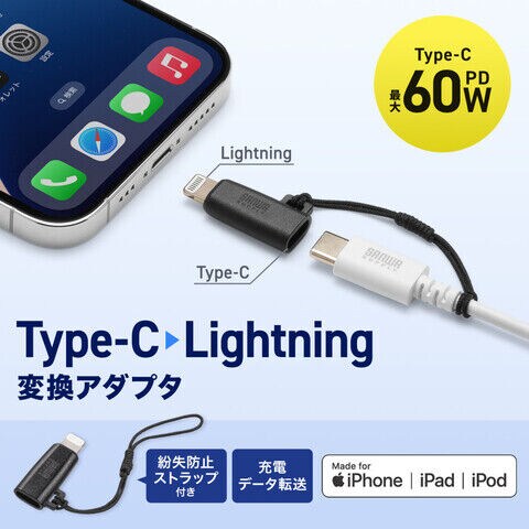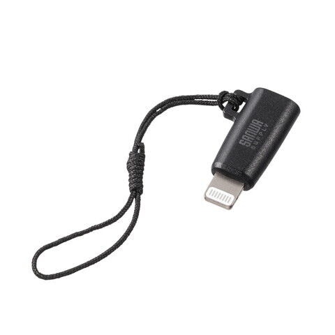 サンワサプライ USB Type-C to Lightning変換アダプタ(MFi認証・ストラップ付き)(ブラック) AD-USB30LCFBK 【返品種別A】