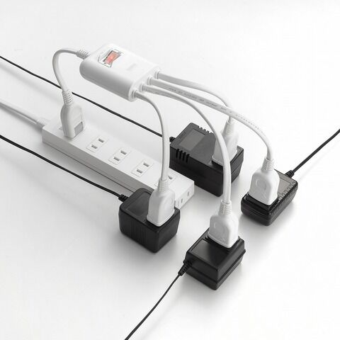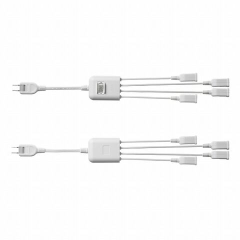 ACアダプタ使用時に無駄なく設置できる分岐タイプの電源延長コード。一括集中スイッチ付き。(2P・4分岐・4個口)