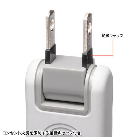 プラグの根元には、トラッキング防止予防に効果的な絶縁キャップ付きです。
