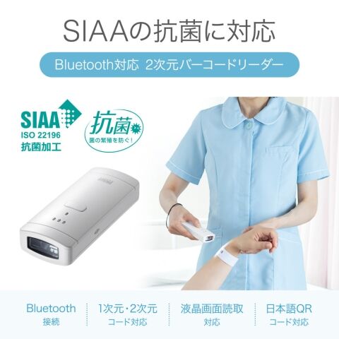 サンワサプライ Bluetooth対応2次元バーコードリーダー(抗菌) BCR-BT2D3W 【返品種別A】