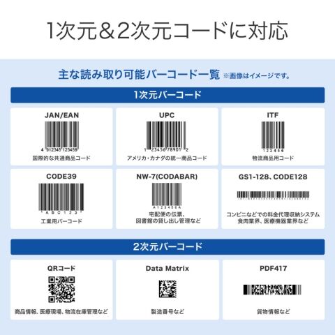 ◆2次元でも1次元でもどちらのバーコードも読み取りが可能です。