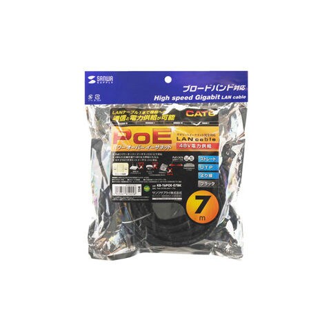 サンワサプライ PoE CAT6 LANケーブル スタンダード(7m・ブラック) KB-T6POE-07BK 【返品種別A】