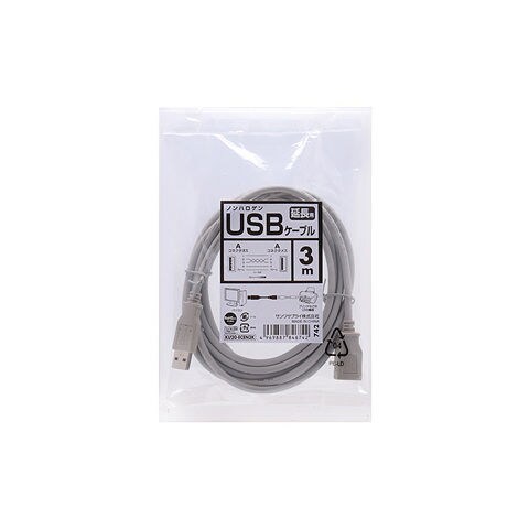 サンワサプライ USB2.0対応エコUSB延長ケーブル(3m・ライトグレー) KU20-ECEN3K 【返品種別A】