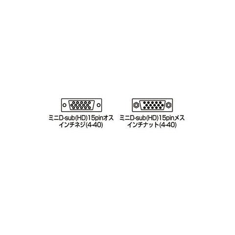 ミニD-sub(HD)15pinオス インチネジ(4-40)- ミニD-sub(HD)15pinメス インチナット(4-40) - ケーブル直径:9mm