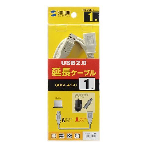 サンワサプライ USB延長ケーブル(1m) KB-USB-E1K2 【返品種別A】
