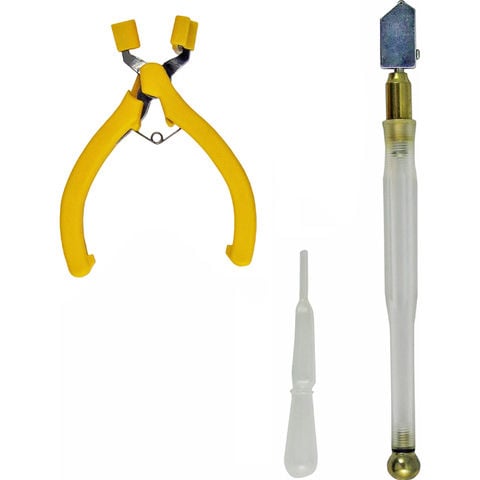 ◆ガラスに折り筋を入れるオイル式ガラス切り(ガラスカッター)と、ガラスを安全に折る為のガラスブレーカーのセットです。