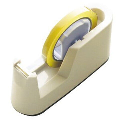 ◆スリムタイプでかさばりにくいテープカッター。しっかり1kgの重量があるのでテープを引っ張ってもずれにくい