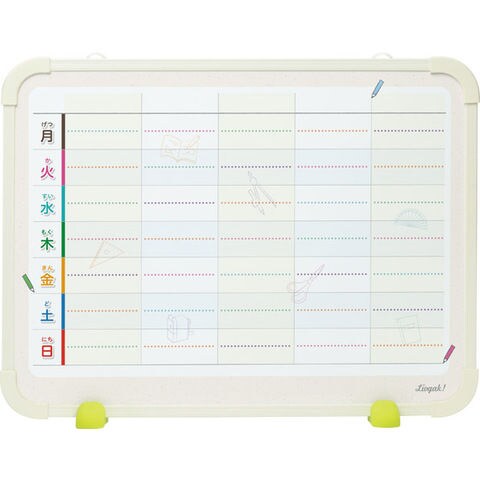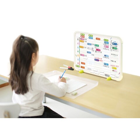 - 付属品:イレーザー付専用マーカー(黒・赤)・マグネット(30個+無地10個)・スタンド足