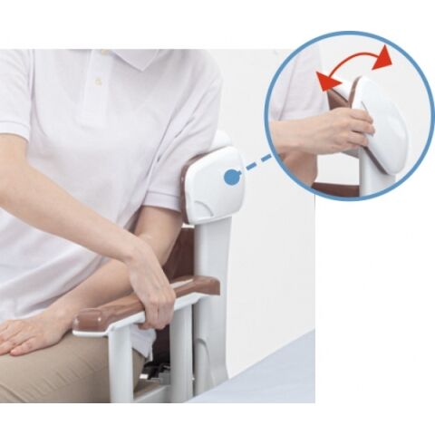 片麻痺の方の身体を支え、安心してひじ掛け昇降操作ができます。