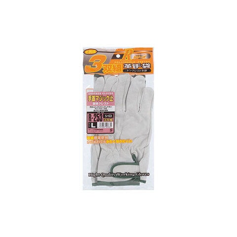 おたふく手袋 革手袋 手首マジック止 3双組(Lサイズ) 2110074R-253 【返品種別B】