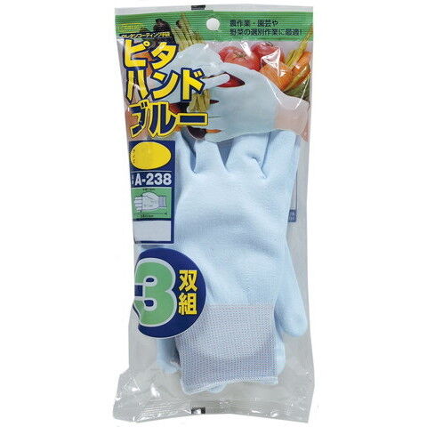 おたふく手袋 ピタハンド ブルー 3双組 M A-238M 【返品種別B】