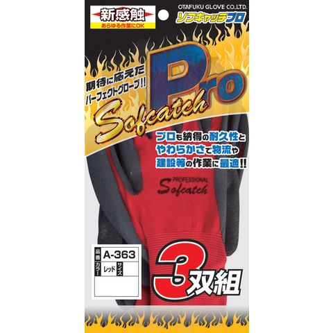 おたふく手袋 ソフキャッチPRO 3双組 L (レッド) Sofcatch PROFESSIONAL A-363L 【返品種別B】