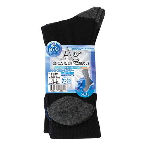 おたふく手袋 銀イオン 先丸靴下 3足組(ブラック・サイズ:25~27cm) S-830-BLK 【返品種別B】