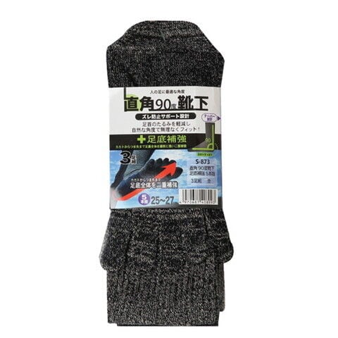 おたふく手袋 直角90度靴下 足底補強 5本指 3足組 (杢アソート・サイズ:25~27cm) S-873-AST 【返品種別B】