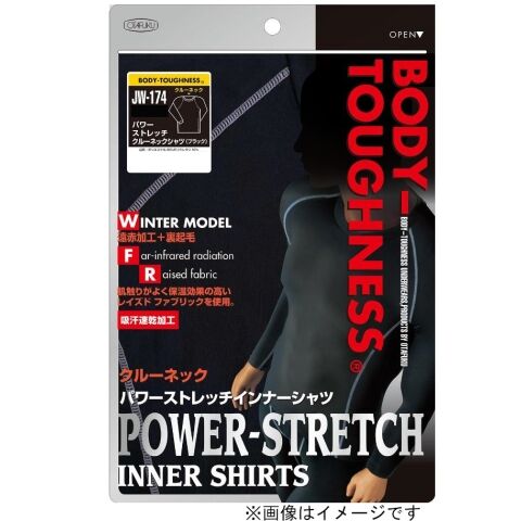 ボディタフネス BTパワーストレッチ クルーネック M (ブラック) BODY TOUGHNESS おたふく手袋 JW-174BKM 【返品種別B】
