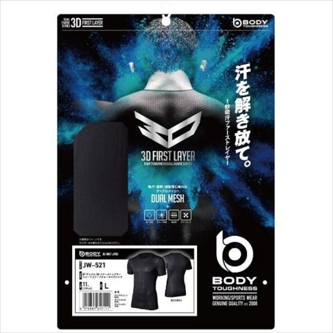 ボディタフネス デュアル3Dファーストレイヤー ショートスリーブ クルーネックシャツ(ブラック Lサイズ) JW-521-L-BK 【返品種別B】