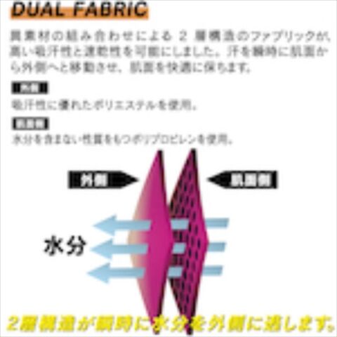 ◆汗を瞬時に肌面から外側へと移動させ、肌面を快適に保ちます。