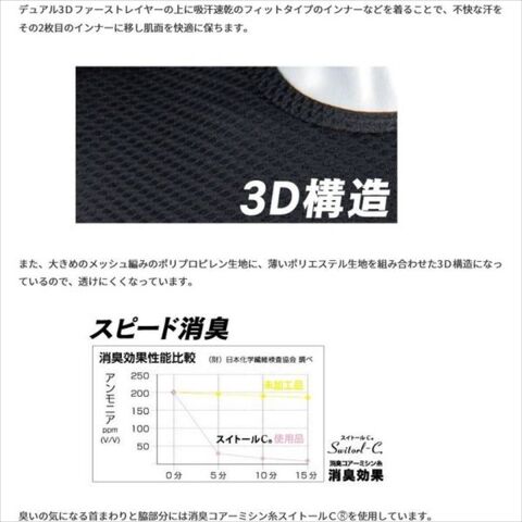 ◆3D構造の2層ファブリックが、汗冷えやべたつきなどを軽減。
