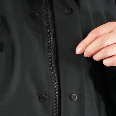 4つのポケット+ペン挿し付きで収納力も抜群。フードと裾にはドローコードを備え、シルエットに変化をつけることも可能です。