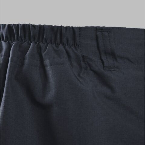 ◆1.ウエスト半リブ、2.フロントファスナー、3.反射テープ/大型サイドポケット、4.フロントポケット、5.カラビナループ、6.バックポケット、7.ダーツ加工、8.裾部ゴムギャザー。