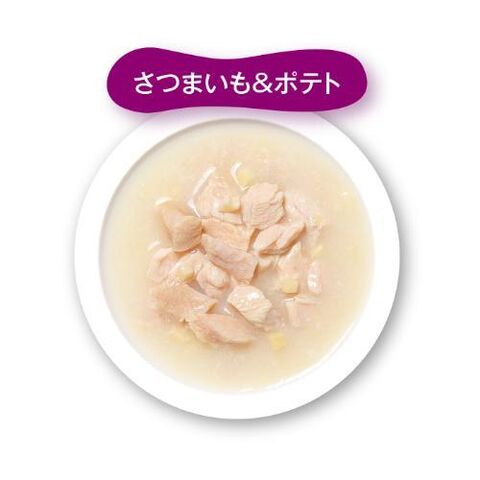 肉類(鶏胸肉、鶏ささみ)、いも類(さつまいも、ポテト)、精製魚油(DHA・EPA源)、増粘多糖類