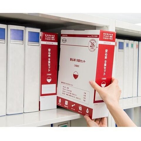・保存期間は5年と長く、お湯や水を注ぐだけで簡単に食べられるため、いざという時に最適です。BOOK型のケースに入っており、収納にも便利です。
