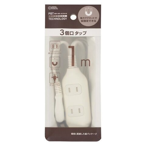 オーム マグネット付き 電源タップ(3個口・1m) OHM HS-T31MGW22 【返品種別A】