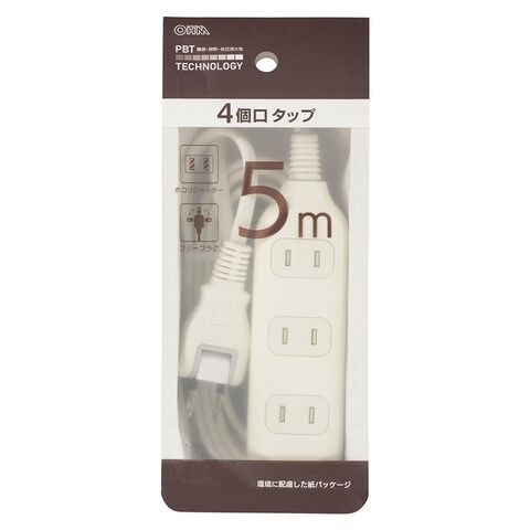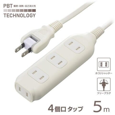 オーム ほこりシャッター付 安全タップ(4個口・5m) OHM HS-T45W22 【返品種別A】