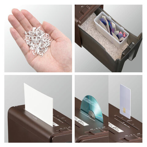 - 最大細断枚数 : 紙…A4コピー用紙(64g/m2)5枚、CD/DVD・カード…1枚