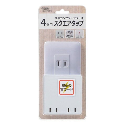 オーム スクエア電源タップ 雷ガード(4個口) OHM HS-AK4PBT-W 【返品種別A】
