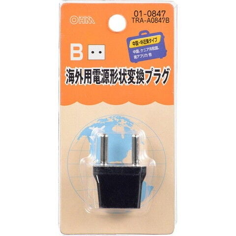 オーム 海外用電源形状変換プラグ Bタイプ OHM TRA-A0847B 【返品種別A】