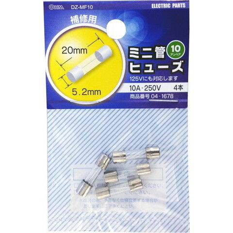 オーム ミニ管ヒューズ 10A-250V OHM DZ-MF10 【返品種別A】