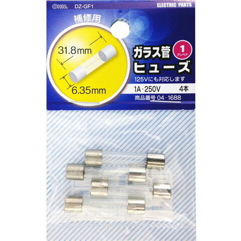オーム ガラス管ヒューズ 1A-250V OHM DZ-GF1 【返品種別A】