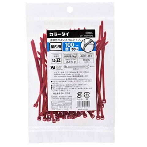 オーム カラータイ 100 赤50本入 OHM 結束バンド 04-3159 CT-100W50RE 【返品種別A】