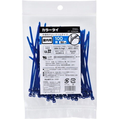 オーム カラータイ 青 50本入 OHM CT-100W50BL 【返品種別A】