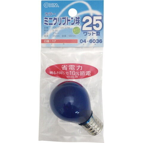 オーム ミニクリプトン球 25W形 E17 ブルー OHM LB-S3725K-CA 【返品種別A】