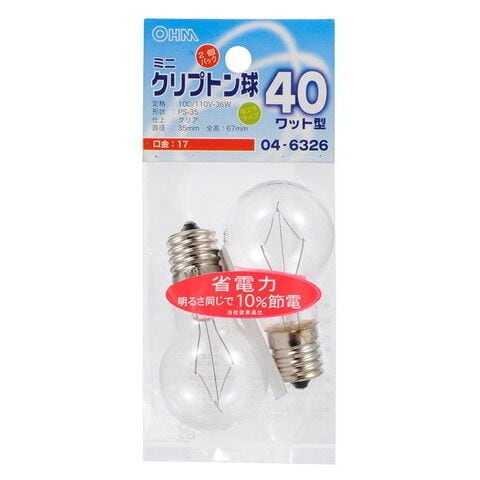 オーム ミニクリプトン球 40W形 E17 クリア【2個セット】 OHM LB-PS3740K-C2P 【返品種別A】