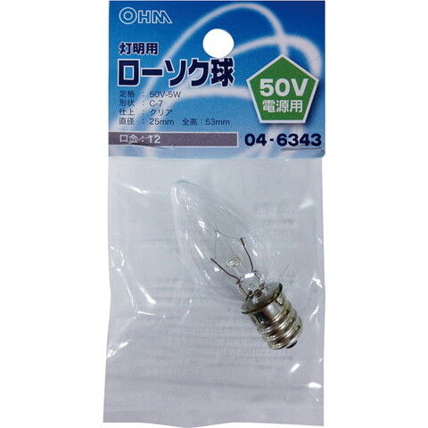 オーム ローソク球 5W E12 (クリア) OHM LB50V-C7205-C 【返品種別A】