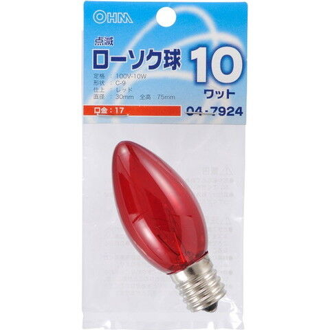 オーム ローソク球 10W E17 (レッド) OHM LB-C9710TE-CR 【返品種別A】