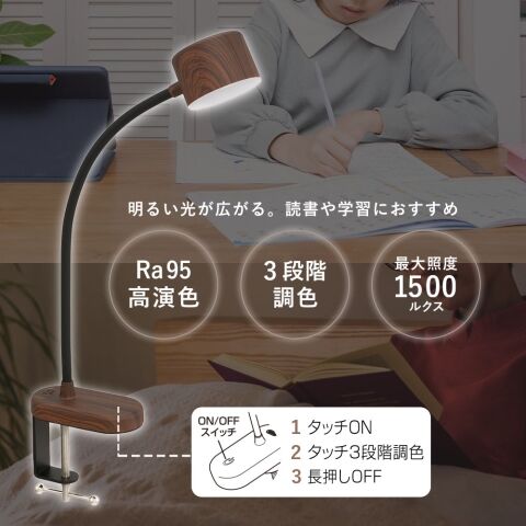オーム USB LEDデスクスタンド クランプタイプ(濃い木目調) 3段階調色 OHM LTC-LD03RK-K 【返品種別A】