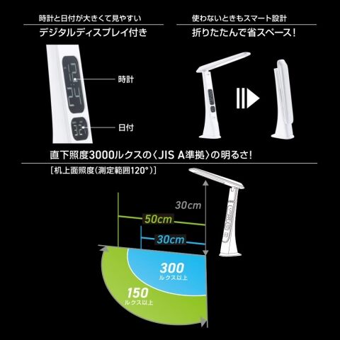 オーム USB LEDデスクスタンド(ホワイト) デジタル表示機能付 OHM DS-L45FD-W 【返品種別A】