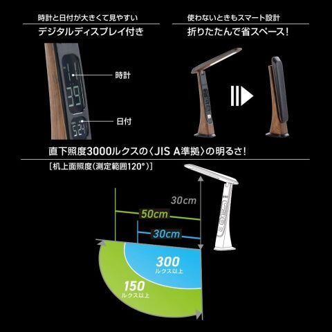 オーム USB LEDデスクスタンド(ダークウッド) デジタル表示機能付 OHM DS-L45FD-M 【返品種別A】