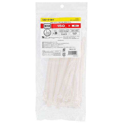 オーム リピートタイ 屋内用 150mm 30本入 白 OHM(09-1252) RPT-150W30WH 【返品種別A】