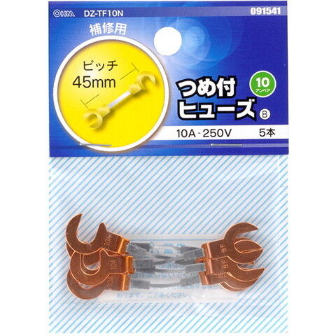 オーム つめ付きヒューズ 10A-250V 5本入 OHM 09-1541 DZ-TF10N 【返品種別A】