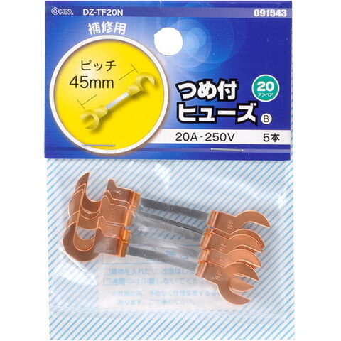 オーム つめ付きヒューズ 20A-250V 5本入 OHM DZ-TF20N 【返品種別A】