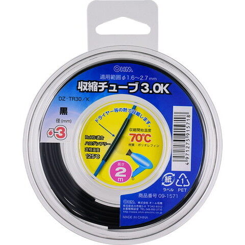 オーム 収縮チューブ φ3.0mm 2m OHM DZ-TR30/K 【返品種別A】