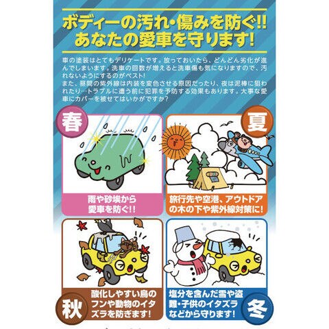 黄砂・花粉・紫外線・酸性雨・樹液・夜露・大気汚染・いたずら(車上荒らし)・盗難からの防止・